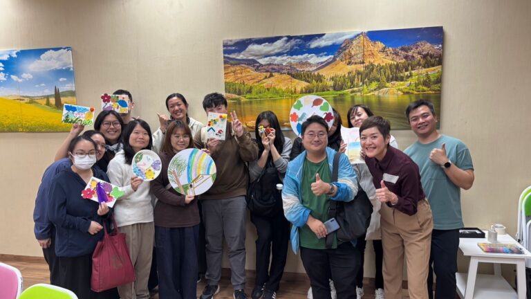 During the students’ exam week, we held a self-care expressive arts workshop with the teachers. Through guided imagery and gentle music, we helped the teachers relieve stress. They also engaged their five senses, discovering their needs through tea leaves, and then used unconventional inks (such as chocolate, coffee, and matcha) to paint and write, expressing their thoughts and inspirations.
