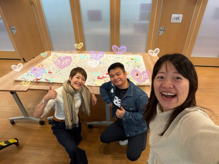 We began with interactive games, opening each other’s hearts in a relaxed and cheerful atmosphere. From individual creation to collaborative creation, we practiced expressing ourselves step by step — starting with free creation in our own personal space, learning to recognize personal boundaries, and understanding how to respect and appreciate both ourselves and others. Finally, each student wrote a sentence to their artwork — it might be words of gratitude, encouragement, or a promise to themselves.